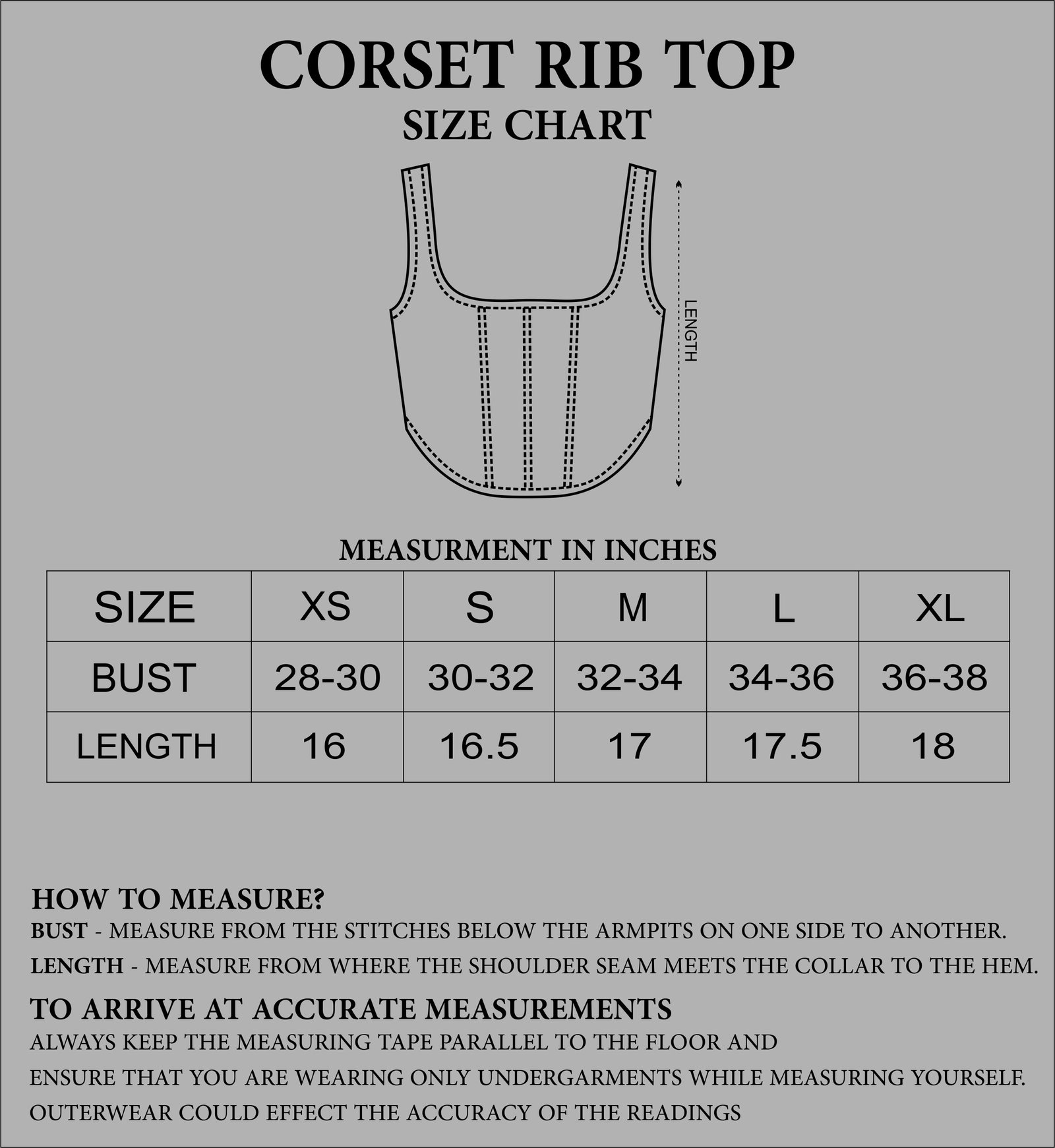 SIZING : GARMENT MEASUREMENT IN INCHES