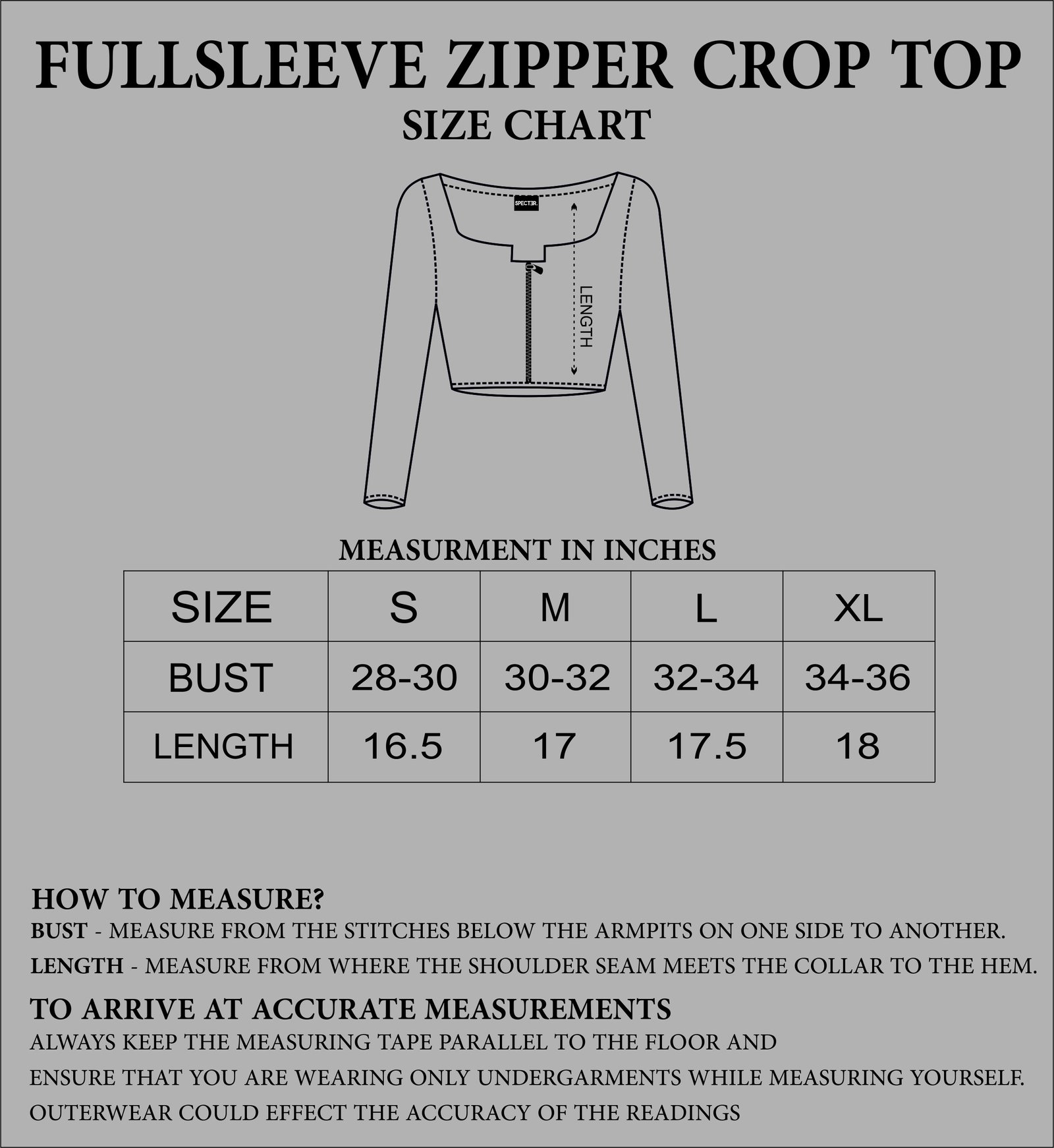 SIZING : GARMENT MEASUREMENT IN INCHES