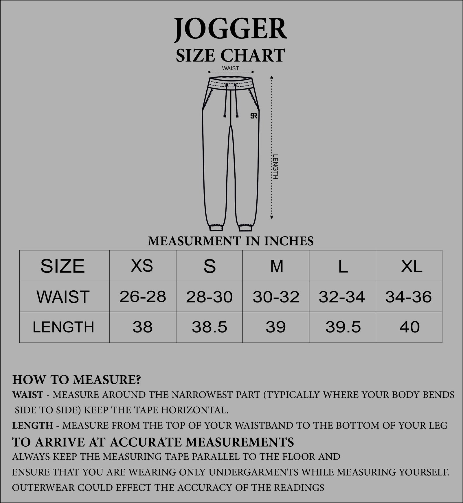 SIZING : GARMENT MEASUREMENT IN INCHES
