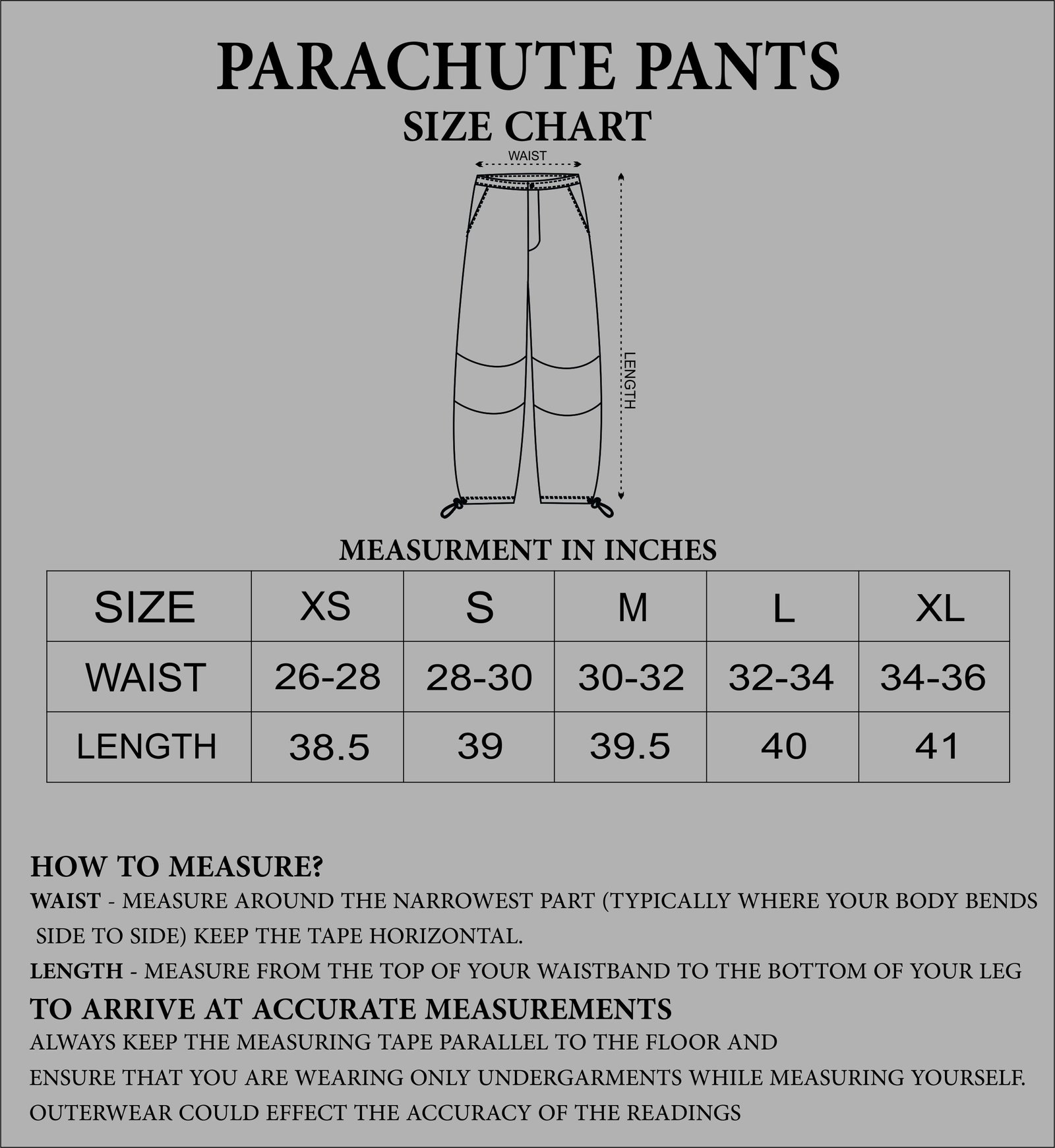 SIZING : GARMENT MEASUREMENT IN INCHES