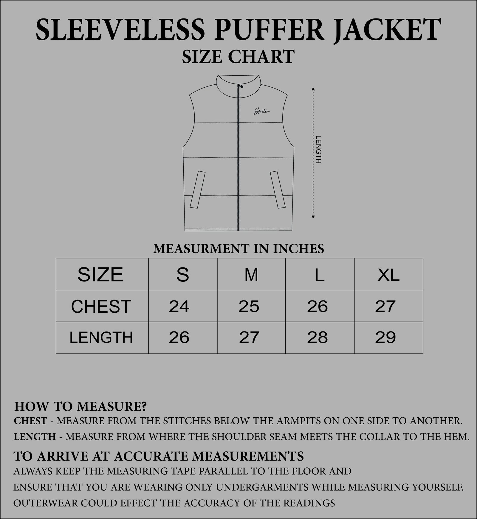SIZING : GARMENT MEASUREMENT IN INCHES